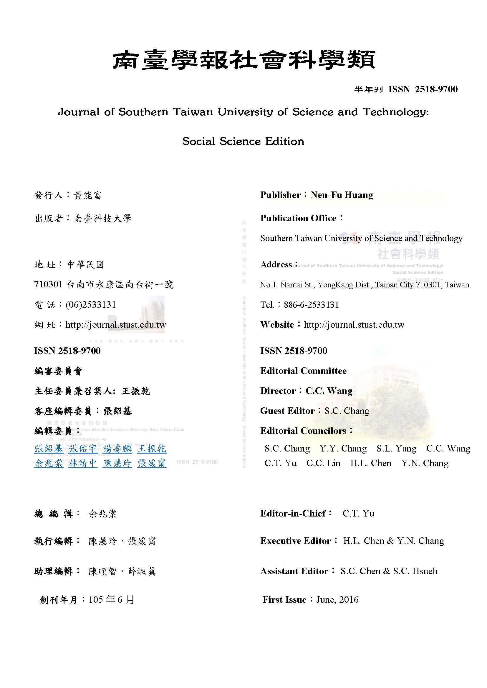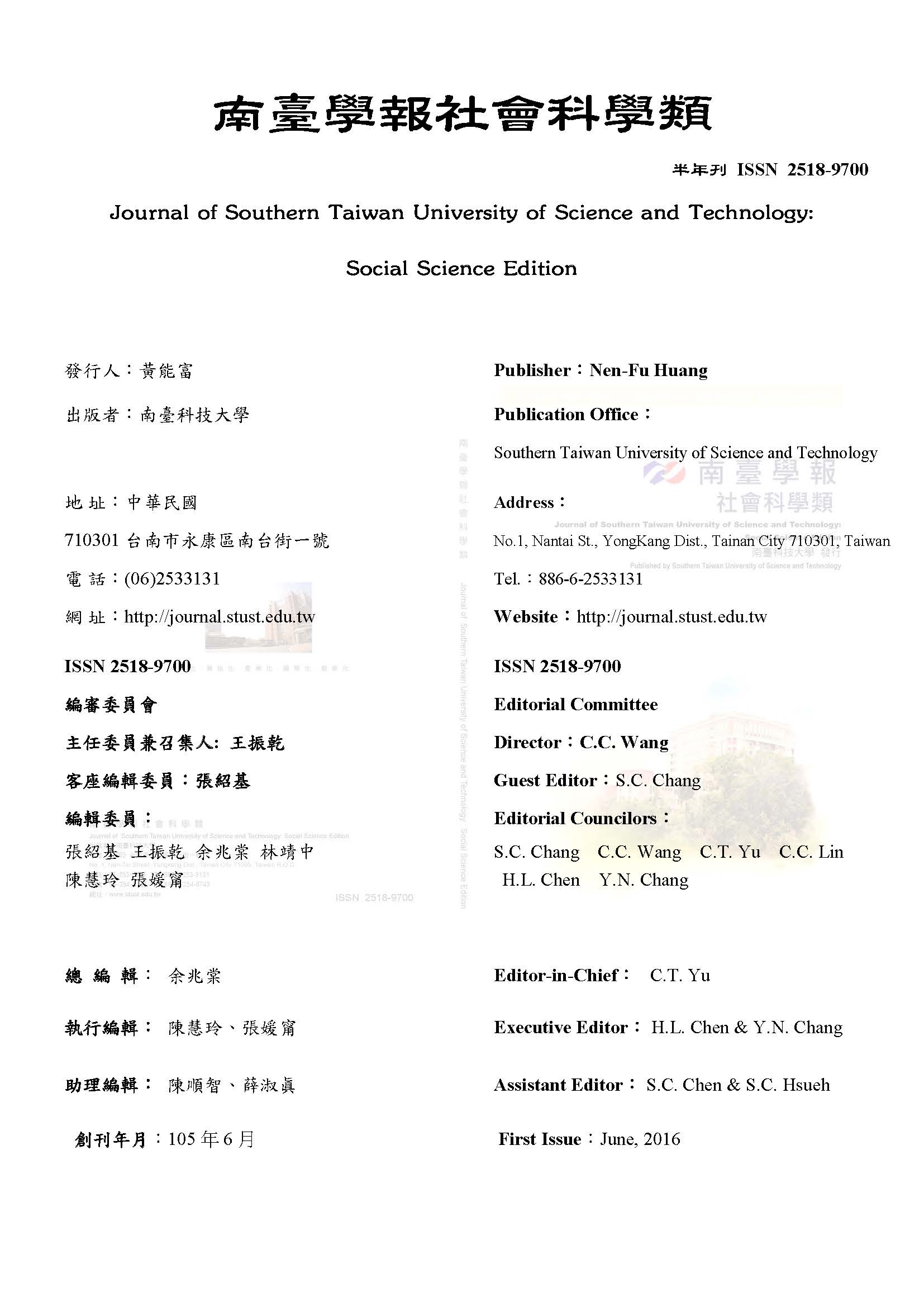 南臺學報社會科學類 Social Science Edition